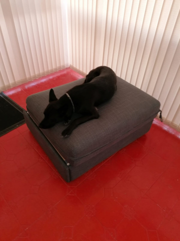She’s a very relaxed dog (until you walk out the front door and she barks but that only happens for...